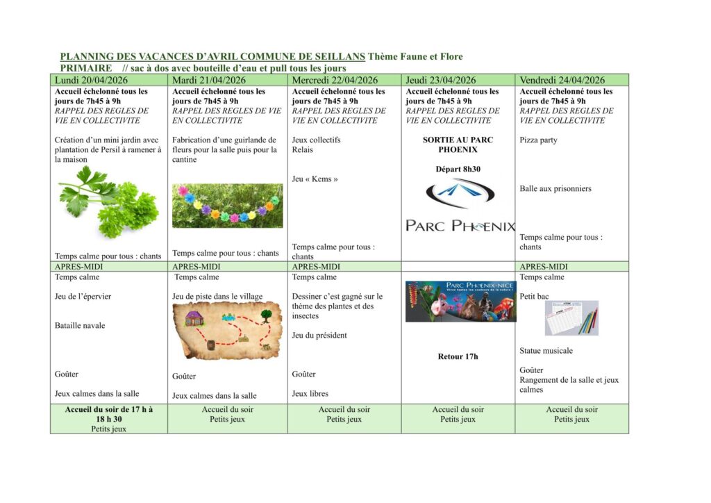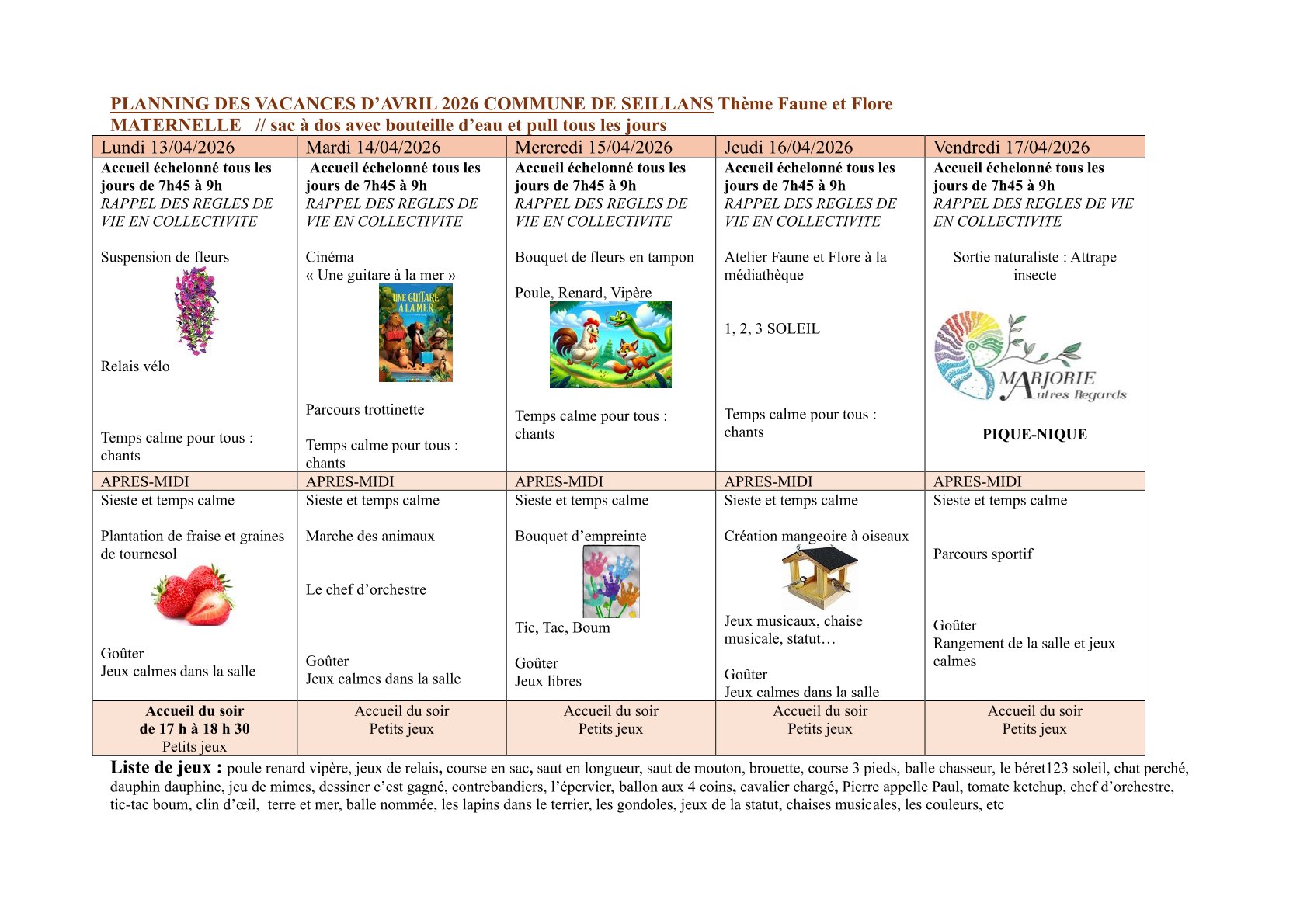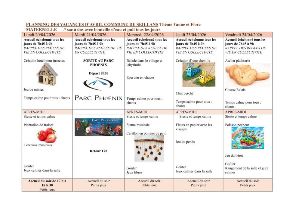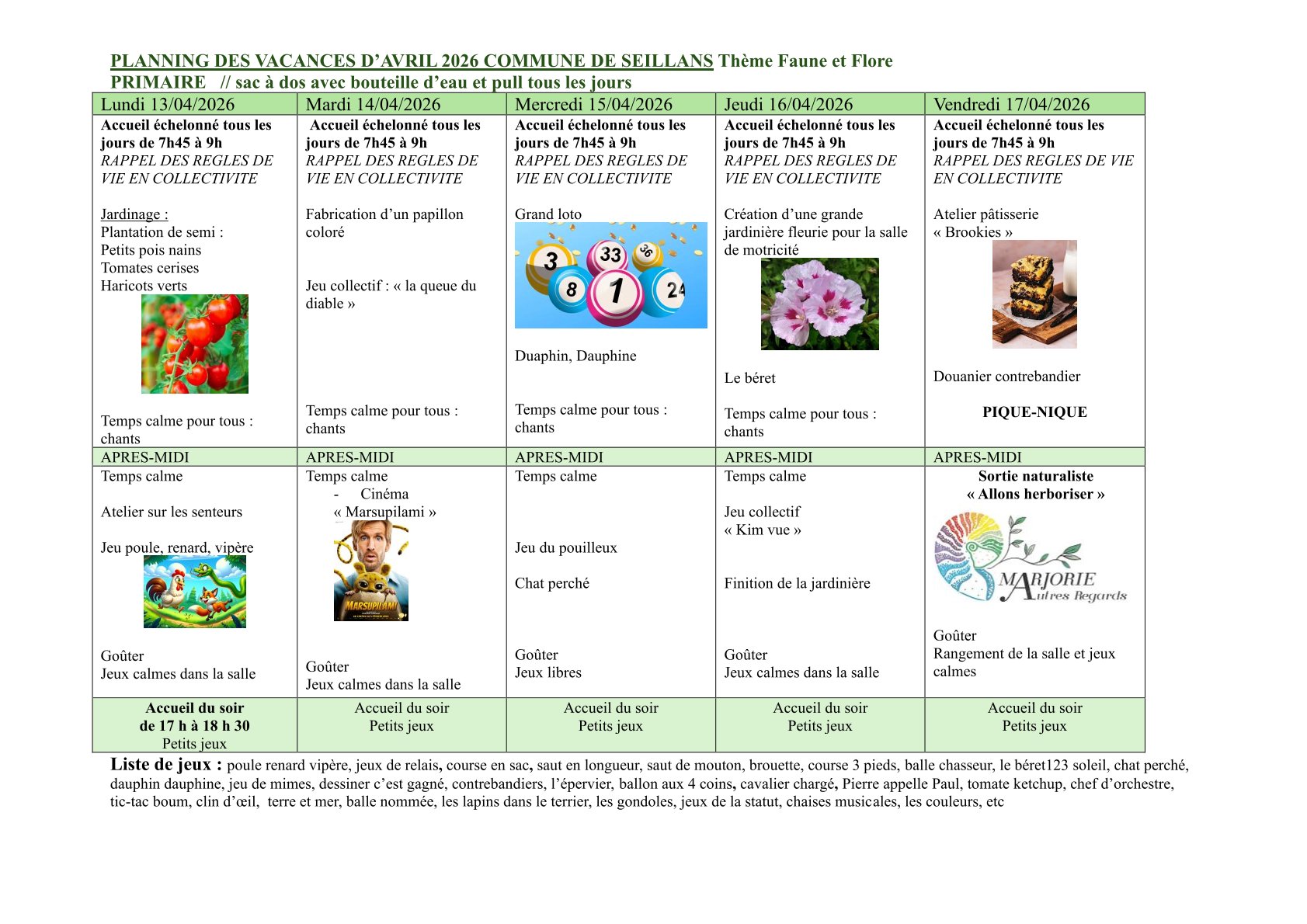 Vacances scolaires : toussaint, hiver, printemps, été (5 premières semaines)
